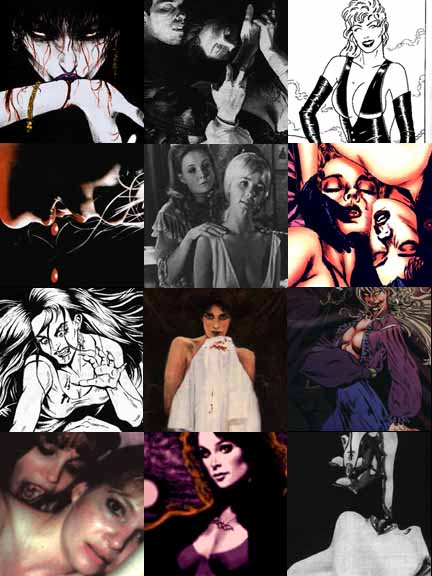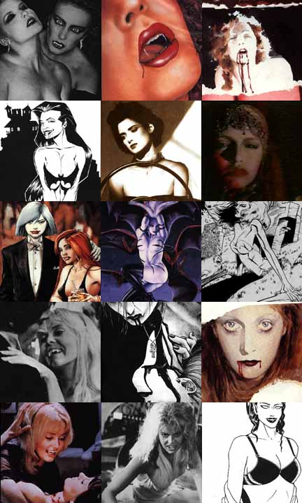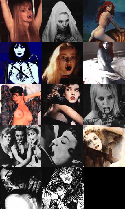 Here is my collection of images of beautiful vampire women, feast your senses upon these wicked maidens. Most are in GIF format, most of these thumbnails are cropped from the entirety of the images in question, so the images you will view will be larger overall. This page functions using client-side imagemaps, so you need Netscape or MS Internet Explorer.